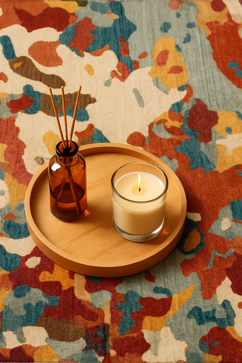 Com um visual artístico e acabamento estonado, o Tapete Madeira traz uma estética moderna que combina com diversos estilos de decoração. Sua paleta em tons terrosos — incluindo bege, laranja queimado, cinza-azulado e vermelho amarronzado — cria uma atmosfera aconchegante e sofisticada, perfeita para quem busca equilíbrio entre conforto e personalidade.