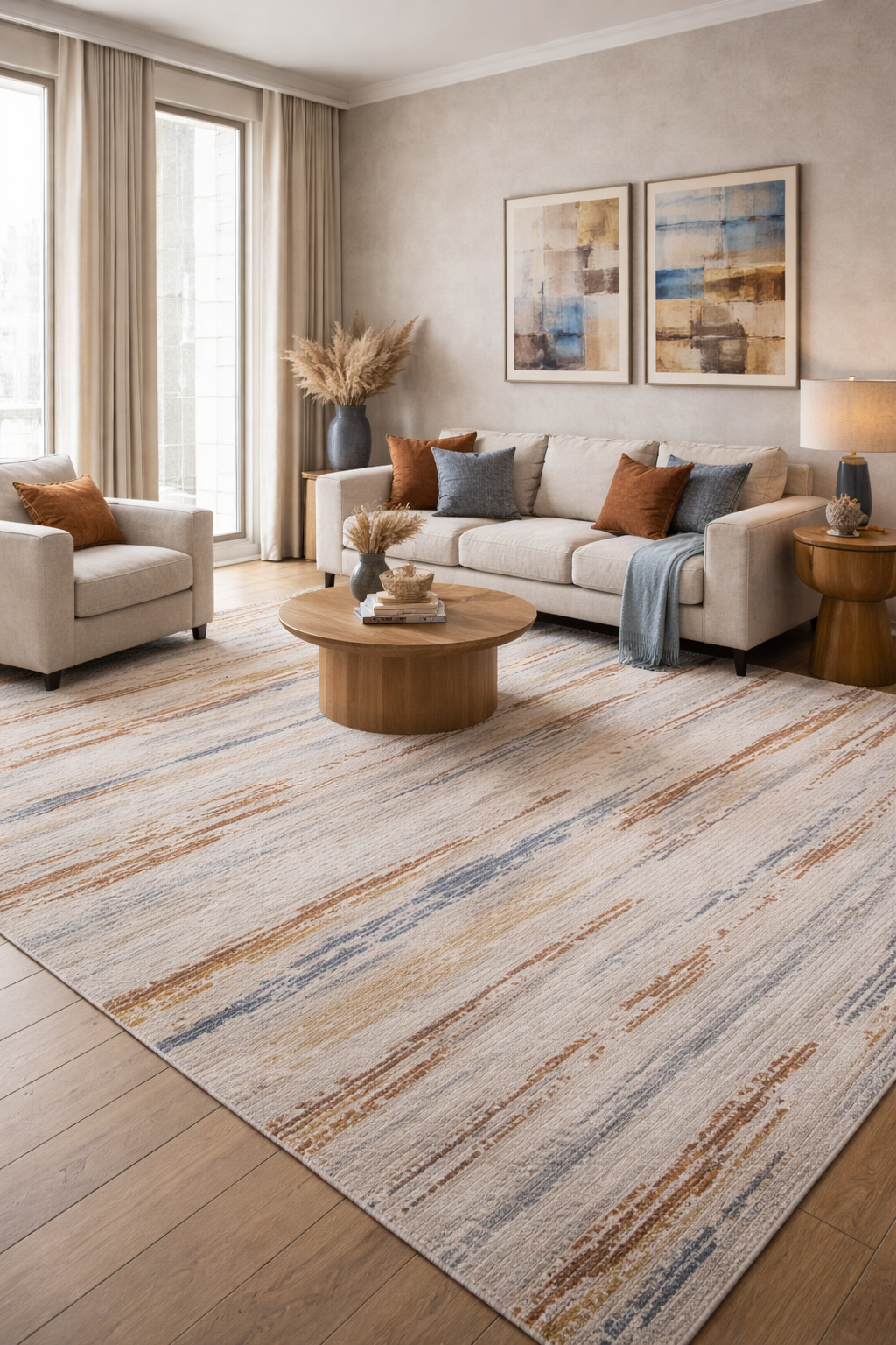 O Tapete Essence 16 da Via Star é ideal para quem busca um tapete moderno, elegante e versátil para compor a decoração. Seu design abstrato contemporâneo combina tons de bege com detalhes em cinza, azul e terracota, trazendo sofisticação e equilíbrio ao ambiente.